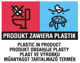 Znak tzw. żółwia oznacza, że produkt zawiera plastik i powinien być składowany zgodnie z zasadami segregacji danego regionu czy kraju.